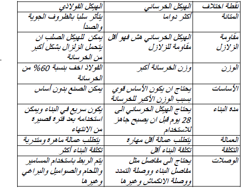 مقارنة بين الهياكل الخرسانية والهياكل الفولاذية :