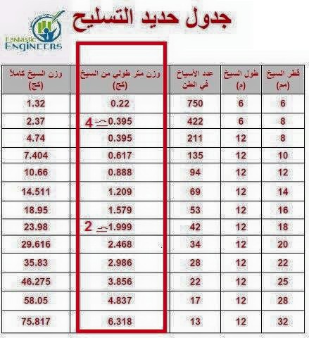 جدول حديد التسليح .....