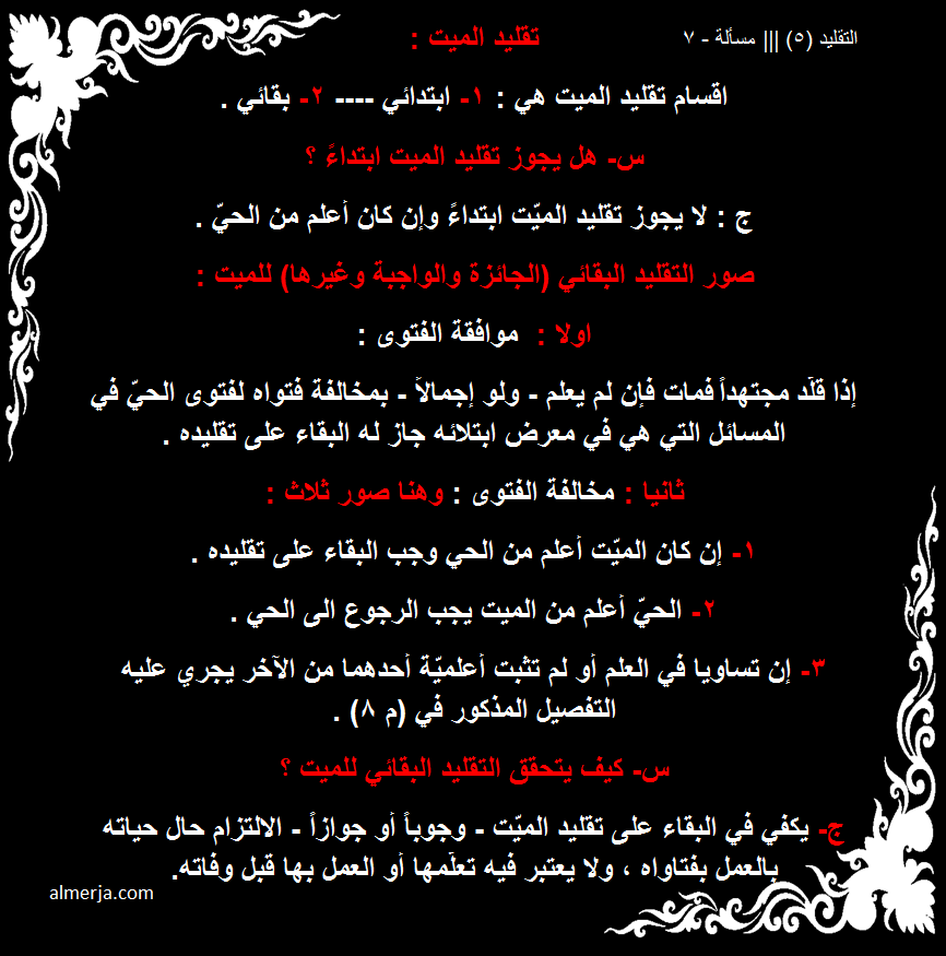س- هل يجوز تقليد الميت ابتداءً ؟