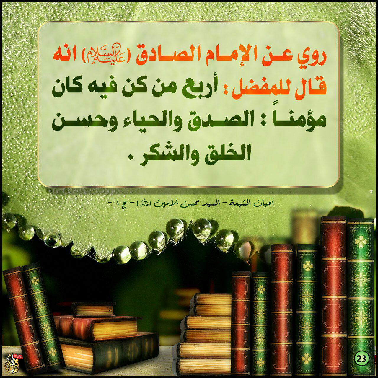 روي عن الإمام الصادق (عليه السلام) إنه قال للمفضل : أربع من كنّ فيه كان مؤمناً : الصدق والحياء وحسن الخلق والشكر .