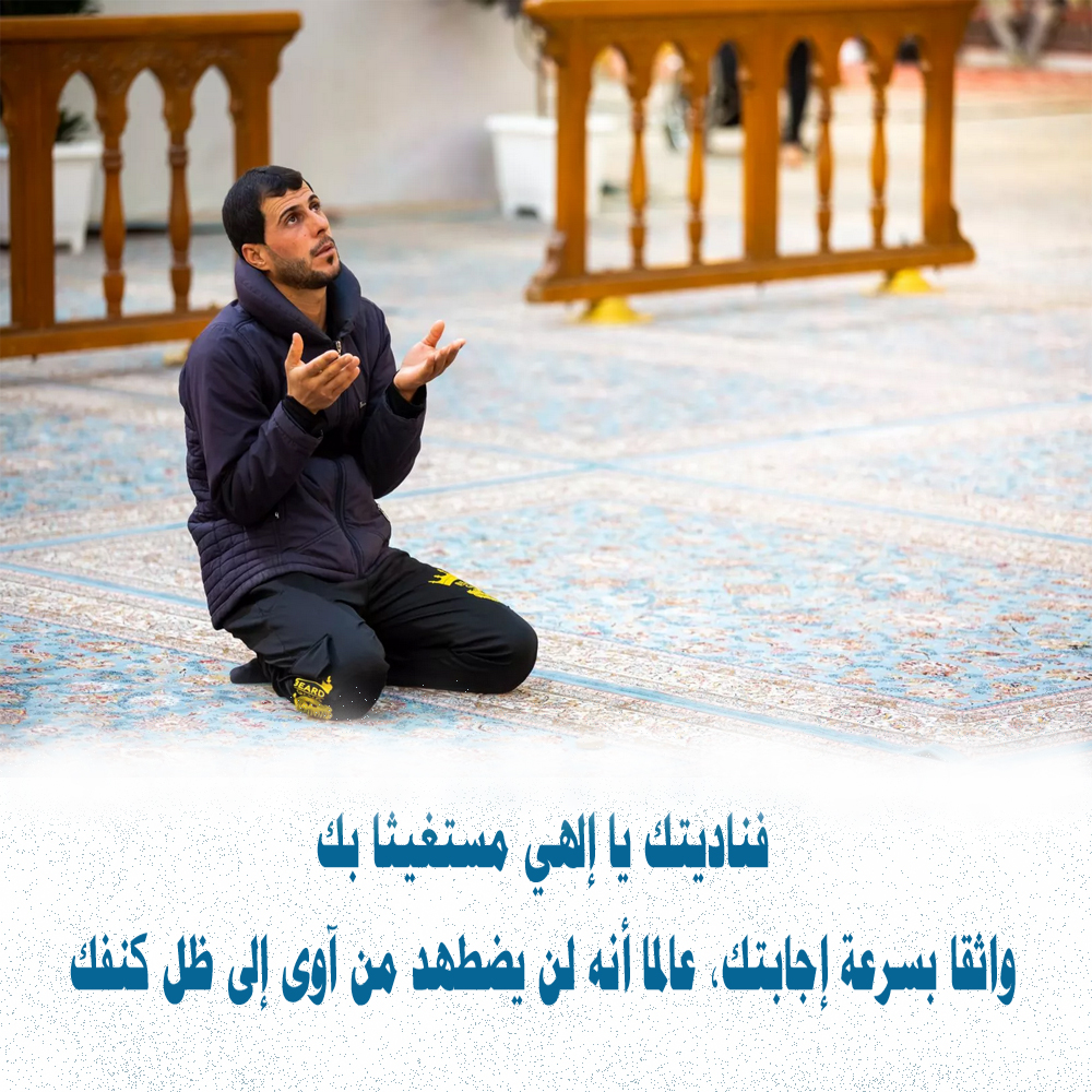 إلهي أنتَ الَّذي لا يُحفيكَ سائِلٌ وَلا يَنقُصُكَ نائِلٌ أنتَ كَما تَقولُ وَفَوقَ ما نَقولُ، اللهُمَّ إنّي أسألُكَ صَبراً جَميلاً وَفَرَجاً قَريباً وَقَولاً صادِقاً وَأجراً عَظيماً، أسألُكَ يا رَبِّ مِنَ الخَيرِ كُلِّهِ ما عَلِمتُ مِنهُ وَما لَم أعلَمُ، أسألُكَ اللهُمَّ مِن خَيرِ ما سألَكَ مِنهُ عِبادُكَ الصَّالِحونَ يا خَيرَ مَن سُئِلَ وَأجوَدَ مَن أعطى أعطِني سُؤلي في نَفسي وَأهلي وَوالِدَيَّ وَوُلدي وَأهلِ حُزانَتي وَإخواني فيكَ، وَأرغِد عَيشي وَأظهِر مُروَّتي وَأصلِح جَميعَ أحوالي.