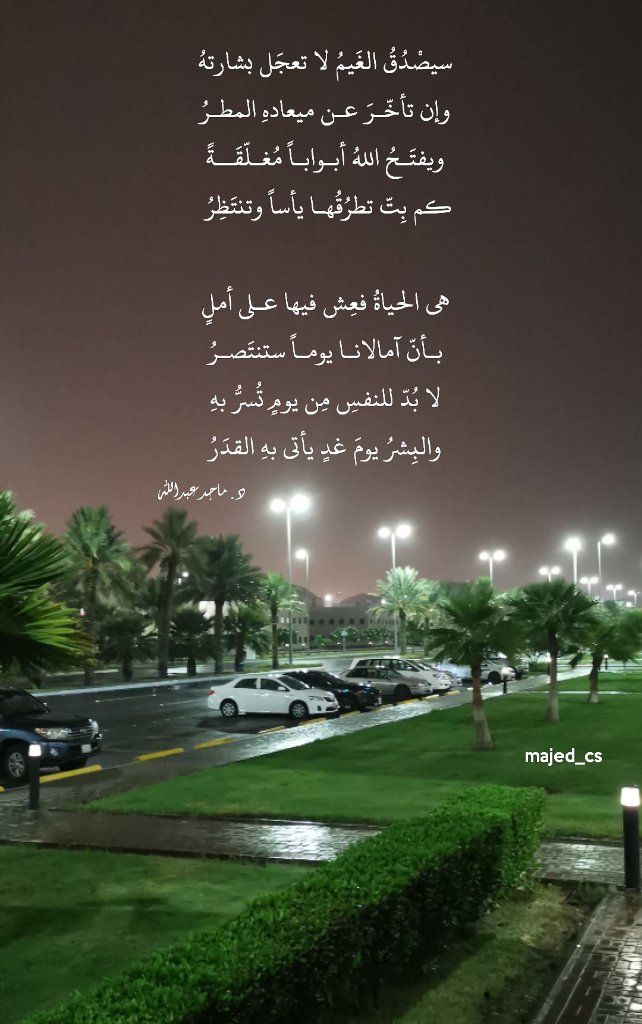 قال الشاعر: ‏"والعُسر مهما قسى فاليسُر يتبَعهُ