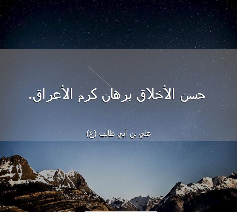 عن الإمام أمير المؤمنين عليه السلام : (حسن الأخلاق برهان كرم الأعراق). غرر الحكم ودرر الكلم للآمدي ص167 ط دار الثقافة في النجف الأشرف.