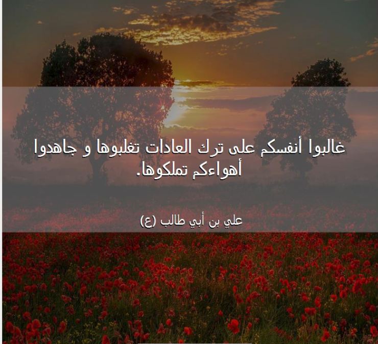 عن أمير المؤمنين علي عليه السلام يقول: (غالبوا أنفسكم على ترك العادات تغلبوها ، وجاهدوا أهواءكم تملكوها). غرر الحكم : ص243 ، حرف الفاء.