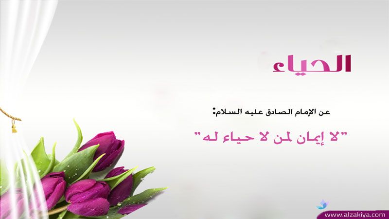 عن الإمام الصادق (عليه السلام) : (لا إيمان لمن لا حياء له). غرر الحكم ودرر الكلم للآمدي ص51