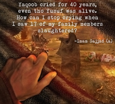 Imam ‘Ali Ibn al‑Hussain (A.S.) used to say: Every Mu’min, whose eyes shed tears upon the killing of Hussain Ibn ‘Ali (A.S.) and his companions, such that the tears roll down his cheeks, Allah shall accommodate him in the elevated rooms of Paradise. Yanaabe’al‑Mawaddah, pg. 419.