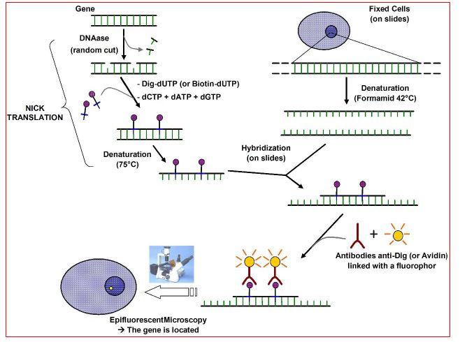تقنية مختبرية تستعمل في الوراثة الخلوية للكشف وايجاد تواليات معينة من DNA على الكروموسوم ، وبعض الاحيان تستعمل للكشف عن جزيئات RNA ، وتعتمد التقنية على تعريض الكروموسوم الى مجس صغير من DNA الذي حمل او الصقت به صبغة متفلورة تعطي الضوء عند استعمال مجاهر الفلورة ، وتكون النماذج في انسجة او خلايا مثبتة :