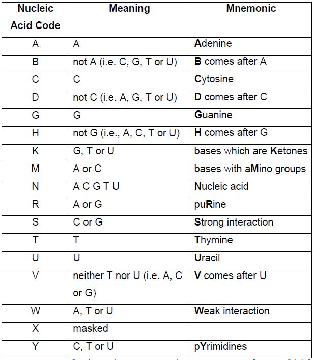 صيغ لكتابة التواليات او المواد الكيماوية لغرض استعمالها في برامج الحاسوب ، فمثلا صيغة FASTA صيغة بسيطة يبدأ السطر الاول ب " > " ثم كتابة بعض المعلومات عن التوالي ثم التوالي باستعمال حرف واحد سواء" لل DNA او البروتينات (اي كتابة التعريف Sequence ID ) . وتوجد صيغ كثيرة ، وقد تكون التواليات مكتوبة وفق نظام IUAPC كما موضح في الجدول التالي للحوامض النووية :