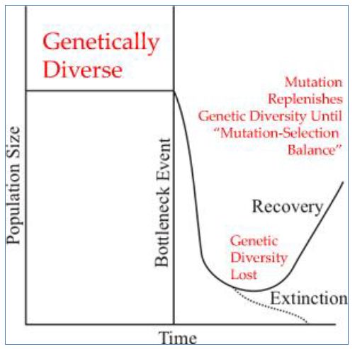 ظاهرة تسمى ايضا Population Bottleneck تحدث عند الكوارث الطبيعية تؤدي الى موت او فقدان القابلية على التكاثر لعدد كبير من افراد المجتمع وبالتالي تقليص حجم المجتمع . والانجراف الوراثي يزيد من الظاهرة نظرا لكون الانجراف الوراثي يتناسب عكسيا مع حجم المجتمع ، وذلك لانه في المجتمعات الصغيرة فان الاليلات المطفرة تكون واطئة التنافس عندما تريد الاحلال محل الاليلات الاصلية اي حصول عملية الثبوت لها ، وبالتالي يعاني المجتمع من تغييرات تطورية سريعة . فضلا عن ان التزاوج الداخلي Inbreeding يؤثر في حالة الاختناق في اجيال قليلة ويؤدي الى التجانس الوراثي Genetic Homogeneity في اعداد قليلة من الاجيال مما ينتج عنه انقراض الانواع