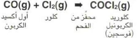 - ينتج أول أكسيد الكربون كلوريد الكربونيل عندما يتحد مع الكلور في وجود ضوء الشمس والفحم النباتي.