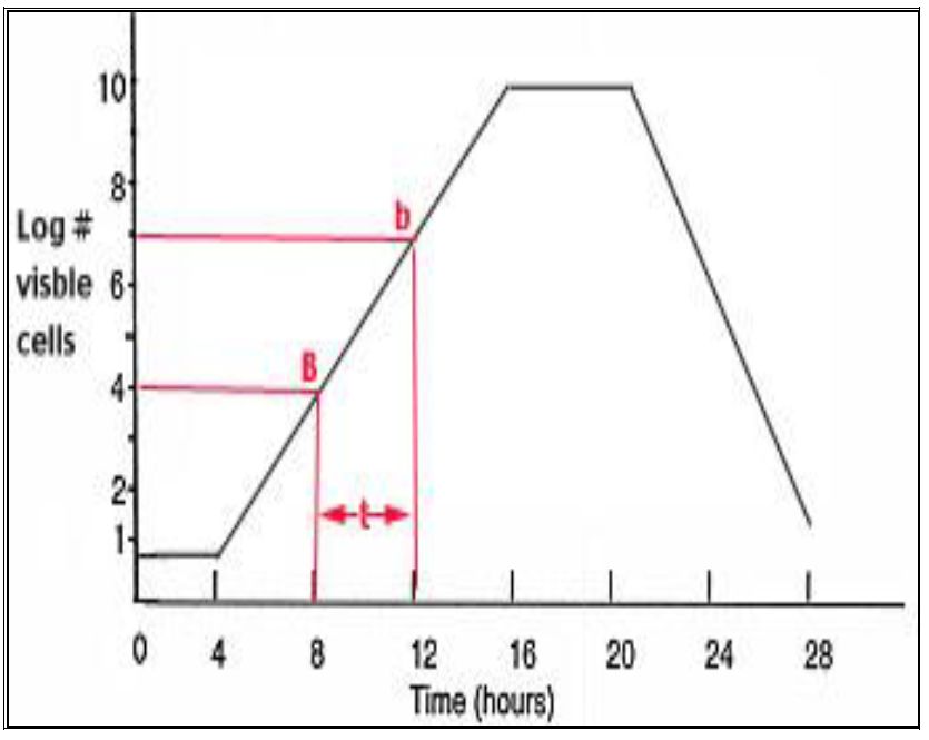 الوقت اللازم لتضاعف عدد الخلايا في المزارع السائلة ويقاس عادة بالنسبة للاحياء النامية في مزارع مغلقة في الطور اللوغارتيمي اذ يكون النمو متوازنا" على محاور الحجم والوزن والعدد، ويختلف طول وقت الجيل اعتماداً على حجم الخلية حيث يتناسبان عكسياً ويمتد من حوالي 25 دقيقة إلى عدة ساعات في بعض البكتريا ، ويقصر وقت الجيل كلما كانت الظروف قريبة من المثلى لتسمح للخلايا بالنمو بأسرع ما يمكن. وتوجد حاسبات على شبكة الانترنيت لاجراء لحساب وقت الجيل او معدل النمو او غيرها من المؤشرات .