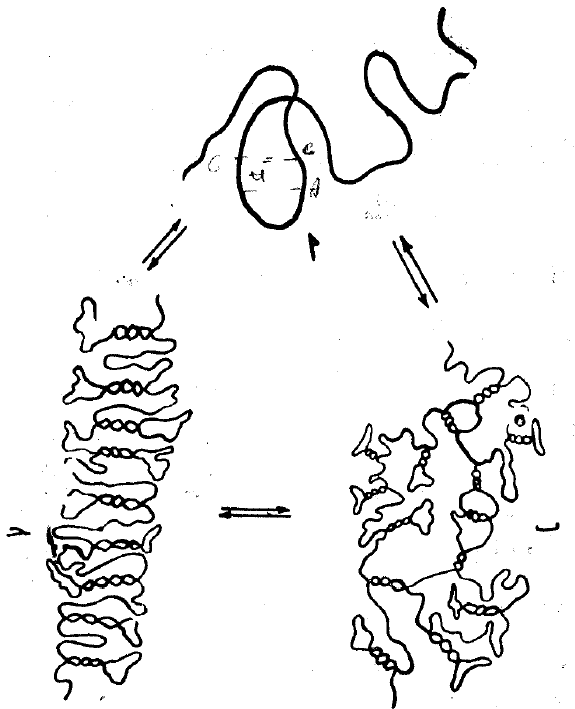 أشكال مختلفة لل RNA تتحول إلى بعضها البعض تبعا لتغير القوى الايونية، ودرجة الحرارة، و pH المحلول. لاحظ المناطق الحلزونية المزدوجة.