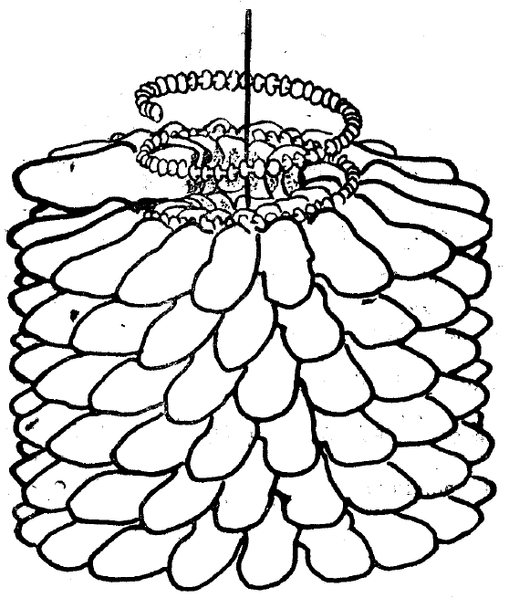تترتب تحت الوحدات ترتيب حلزونيا بطول الجزيء الفيروسي بحيث تتكون كل ثلاث لفات من 49 تحت وحدة، أي أن كل لفة 16.3 تحت وحدة، طول الثلاث لفات 69 انجستروم، أي أن مسافة كل لفة تبلغ ۲۳ انجستروم وتسمى هذه المسافة pitch of helix، ويتكون الجزيء كله من ۱۳۰ لفة حلزونية. يظهر الجزيء الفيروسي في القطاع المرضى كأنبوبة مجوفة من تحت الوحدات البروتينية مكونة للغطاء الخارجي للفيروس ويرقد بداخلها الحامض النووي في تجاويف خاصة على بعد 40 انجستروم من محور جزيء الفيروس آخذا الشكل الحلزوني.