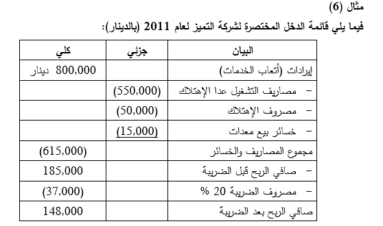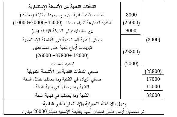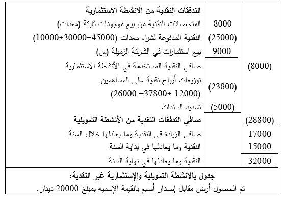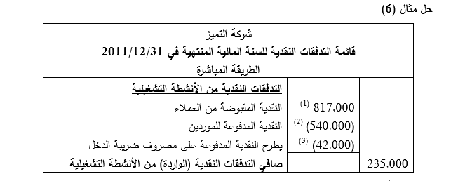 5ـ تم ضمن الأنشطة التمويلية إظهار كل من حصص أرباح الأسهم المدفوعة، وتسديد السندات ، وتوزيعات الأرباح.