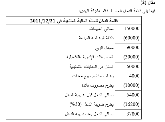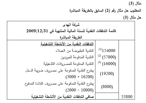 ( 3 ) النقدية المدفوعة لضريبة الدخل = مصروف الضريبة + النقص في الضريبة المستحقة