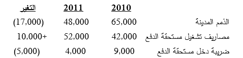المطلوب : اعداد الجزء التشغيلي من قائمة التدفقات النقدية للسنة المنتهية 31/12/2010 لشركة التقوى بالطريقة الغير مباشرة