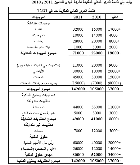 3ـ تم إضافة النقص في الموجودات المتداولة وطرح الزيادة في الموجودات المتداولة، أما المطلوبات المتداولة فقد تم إضافة الزيادة فيها وطرح النقص.