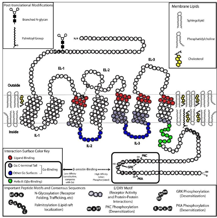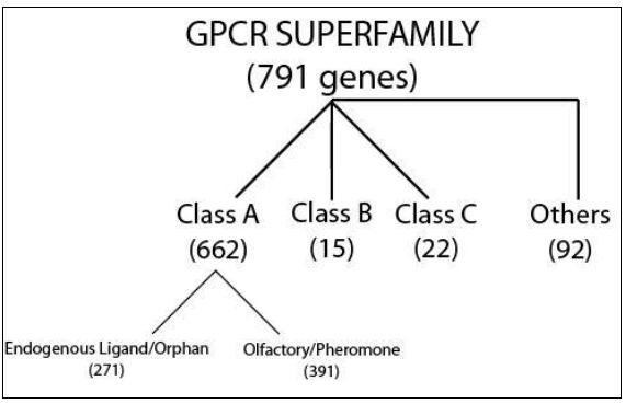 والجينوم البشري يشفر لآلاف من هذه المستلمات ، حوالي 350 منها تميز الهرمونات وعوامل النمو ومواد خلوية .وتوجد برامج حاسوب لحدسها باستعمال مكوناتها من الحوامض الامينية الكاذبة . تشارك في العديد من وظائف الجسم . ولها تراكيب بلورية محددة للكثير منها تركيبها معقد كما موضح في الاتي :