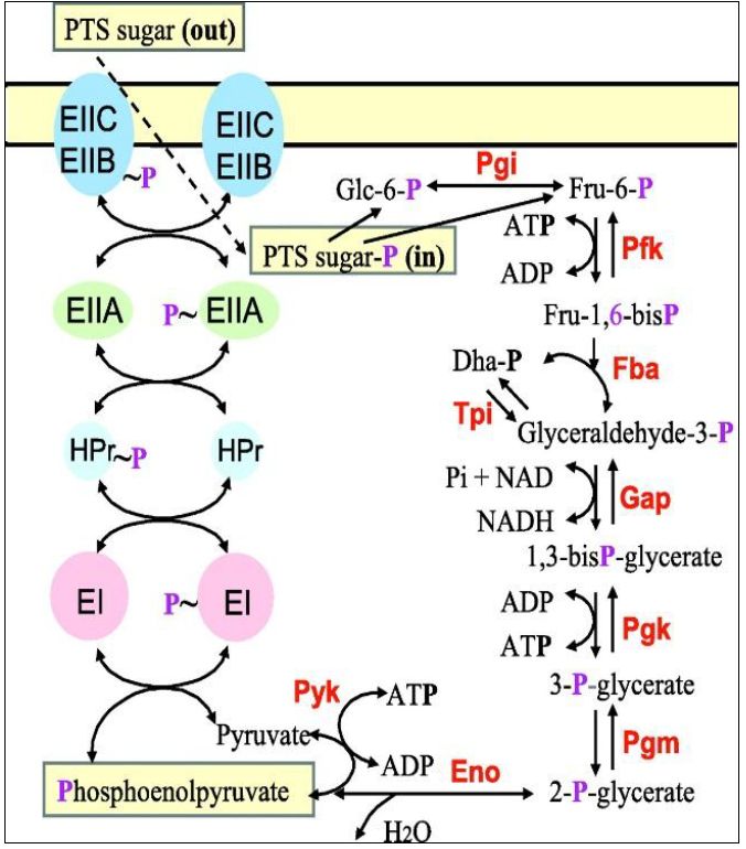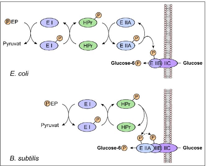 نظام لنقل المواد عبر الاغشية الخلوية الذي يتزامن مع تغيير تركيب المادة المنقولة لذلك لا يعاني من توازنات التراكيز ويتمثل النظام ب PTS System المكون من ماكنة معقدة من الأنزيمات ومهمته نقل السكريات عبرأغشية الخلية بشكل متزامن مع فسفرتها ، ونظرا لكون النتيجة وجود سكر خارج الخلية وسكر مفسفر داخل الخلية لذلك فأنه لا يعتمد على تدرج التركيز . والطاقة اللازمة لذلك توفرها مجموعة الفوسفات ذات الطاقة العالية الموجودة في ( PEP) ، وتنقل الطاقة عبر سلسلة من التفاعلات والبروتينات الخاصة بالنظام PTS- specific proteins المرتبطة او الواقعة في الغشاء ، ومكونات النظام وتفاعلاته موضحة في الشكل ادناه