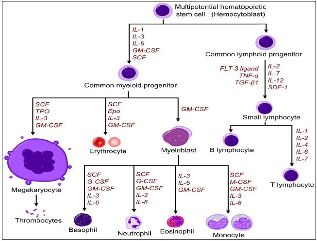 وتخصص الخلايا يكون استجابة لعدد من السايتوكينات وغيرها من العوامل .