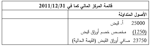 المطلوب : اجراء قيود التسوية اللازمة في 31/12/ 2011 واظهار الأثر على قائمة المركز المالي بذلك التاريخ .