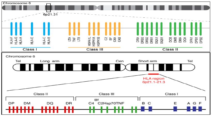 نظام Human Leukocyte Antigen مكون من عدة جينات خاصة بكل شخص تشفر لمجموعة من البروتينات وهي ضمن MHC) Major Histocompatibility Complex) اي انها صورة لها توجد في اغلب الفقريات ، تشكل حوالي 20 جين تقع على الذراع القصير للكروموسوم 6 وعلى بعد 32 Centimorgans من المركز ما عدا β2-microglobulin الذي يقع على الكروموسوم 15 . وتمثل مجموعة من البروتينات الموجودة على خلايا نخاع العظم ويمكن ان تشير الى الاستجابة المناعية . وهذه يجب ان تكون متوائمة بين المعطي والمستلم عند نقل نخاع العظم حتى لا يرفضها جسم المستلم . تساعد الجسم للتمييز بين بروتينات الجسم الذاتية والبروتينات الغريبة او الغازية مثل البكتريا والفيروسات . تقسم المجموعة الى ثلاث اصناف او مجاميع هي III, II, I :