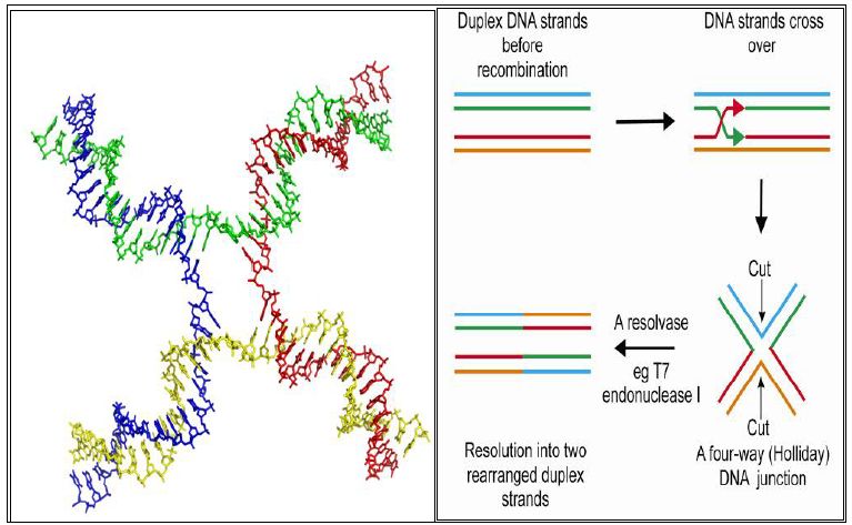 تركيب متصالب الشكل يتكون اثناء التأشب الوراثي المتماثل بين الكروموسومات المتماثلة ، فعند اصطفاف اثنين من الكروموسومات بجانب بعض تنكسر الاشرطة لكل كروموسوم ويتم ارتباط الشريط المكسور لاحد الجزيئات الى الشريط من الكروموسوم الاخر ونقطة العبور هي التركيب المتصالب ، ويمكن ان تنزلق الى الاعلى او الاسفل بين الكروموسومين لذلك يمكن ان يتم تبادل جزء قليل او كبير بين الكروموسومين وعندما تنفصل اشرطة DNA المزدوجة التي توالياتها تكاد ان تكون متشابهة ، مكونة اربعة اشرطة منفصلة لغرض تبادل القطع الوراثية . وبذا يمكن وصف التركيب بانه تركيب متفرع للحوامض النووية لها اربعة دومينات مزدوجة مرتبطة مع بعضها وتكون بمثابة تركيب وسطي يتكون اثناء عملية التأشب الوراثي وهذه الدومينات لها تواليات متناظرة ، سميت على اسم Robin Holding الذي اقترح وجودها عام 1964 ، توجد بتشكيلات مختلفة تتاثر بوجود الايونات الموجبة الثنائية مثل ++Mg .