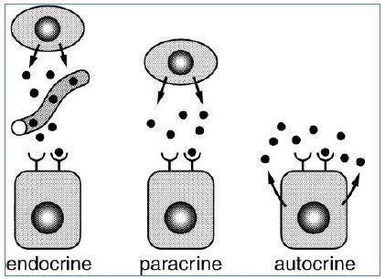 وقد يكون تاثير الهرمون من النوع الذي ينتشر بواسطة الدم ويرتبط الى خلايا مستهدفة بعيدة Endocrine Action . او يكون ذات تاثير موضعي Paracrine Action اذ ينتشر من الخلايا المنتجة الى الخلايا المجاورة ، وبعض الاحيان يكون تاثير الهرمون ذاتي Autocrine اذ يؤثر في الخلايا التي تنتجه .