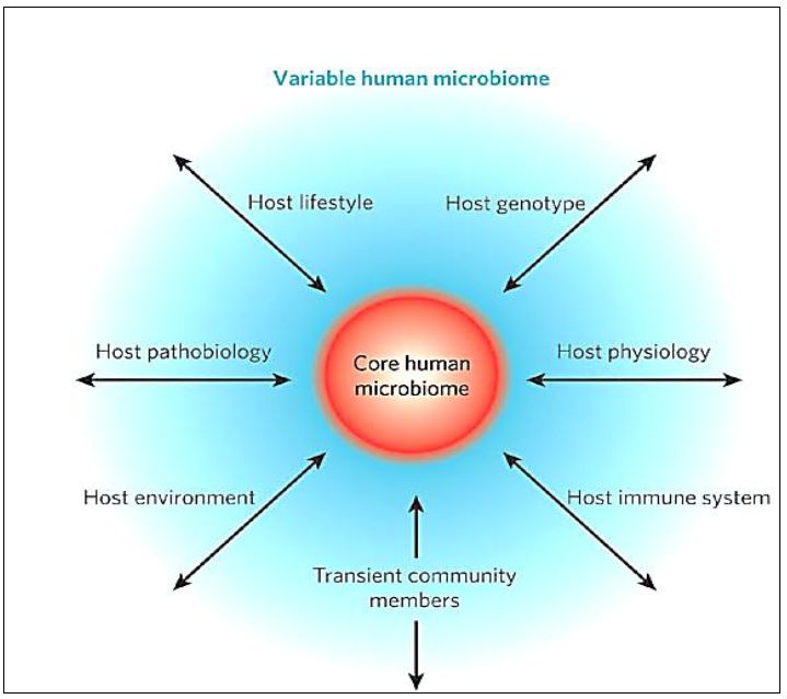 حقل يتناول دراسة الاحياء المجهرية الموجودة في وعلى جسم الانسان وهو من المواضيع المتداخلة مع غيره مثل الايض والصحة ويتاثر بالعديد من الظروف .