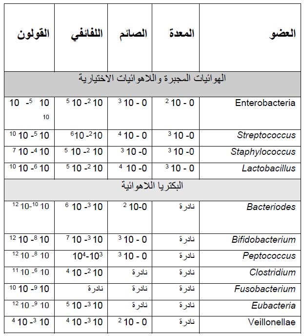 تتوزع الأحياء المجهرية على مناطق معينة من الجسم وهي الجلد والفم والأنف والقناة الهضمية Gut والمهبل أي انها تعيش في وكذلك على جسم الإنسان وتصل الى عشرات الملايين كما ذكر آنفا مما دعا الى اعتبار الإنسان كائن خارق Superorganism أي انه نظام بيئي معقد وان جينومه أو مكونات جينومه يقع ضمن ما يسمى بجينوم المجتمع Human Metagenome . وقد تم تحليل مئات الجينومات للميكروبات واكتشف ان هناك جينات وبروتينات جديدة لا يشفر لها بالجينوم البشري . وبذلك تبين ان الجينوم الأعم والأغلب هو للميكروبات كما أظهرت نتائج تحديد تواليات 16S rRNA في البكتريا والاركيا و 18S rRNA لحقيقيات النواة ، تخدم في وظائف لا يقوم بها الجينوم البشري وإنما ما يحويه من الأنواع والأجناس المختلفة من الأحياء . والمكنون الميكروبي يختلف من شخص لآخر حتى وان كانوا في البيئة نفسها فضلا عن الاختلافات التي سجلت للتوائم المتماثلة . وتتوزع الاحياء على مختلف اجزاء الجسم واكثرها اهمية الجهاز الهضمي كما نوضح في الجدول الاتي (الأعداد وحدة تكوين المستعمرات لكل غرام من محتوى جزء القناة الموضح ) :