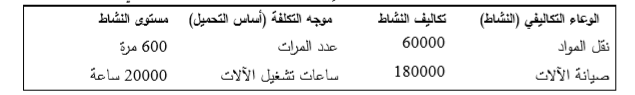 وﻹيـﺿﺎح ﻣﻔﻬوم اﻟﺗﻛﻠﻔﺔ ﻋﻠﻰ أﺳﺎس اﻟﻧﺷﺎط ﻧورد اﻟﻣﺛﺎل اﻟﺗﺎﻟﻲ: