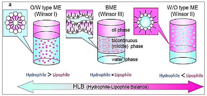 فالقيم الأقل من 6 تؤدي الى تشتيت الماء في الزيت ، أما القيم 10 – 18 فلها تأثير معاكس وتؤدي الى استحلاب الزيت في الماء . وتكون قيم HLB لها علاقة بطول سلسلة الهيدروكاربون (أي الجزء الكاره للماء) الذي تعمل عليه .