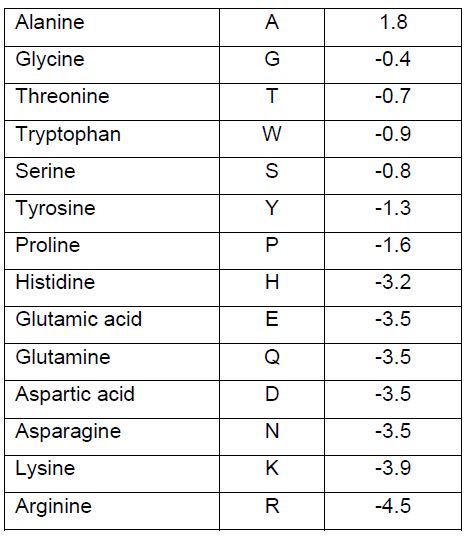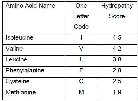 وهناك عدة طرق لقياسها ، وقيم كراهية الماء للحوامض الامينية موضحة في الجدول الاتي :