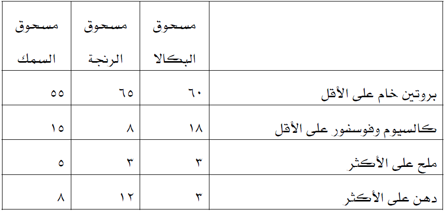 جدول يبين الفرق بين مساحيق السمك