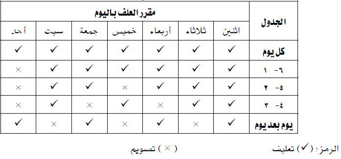 للحفاظ على وزن الجسم وتجانس القطيع تتعدد نظم التعليف حسب ما هو موضح في الجدول التالي: