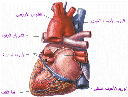 شكل رقم (2) قطاع طولي في القلب يبين الأجزاء الداخلية .
