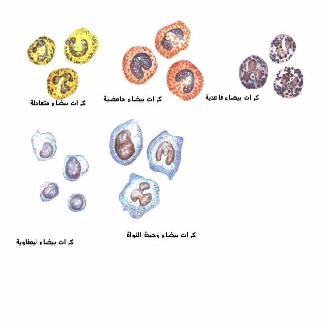 شكل رقم ( 5 ) يوضح انواع كرات الدم البيضاء