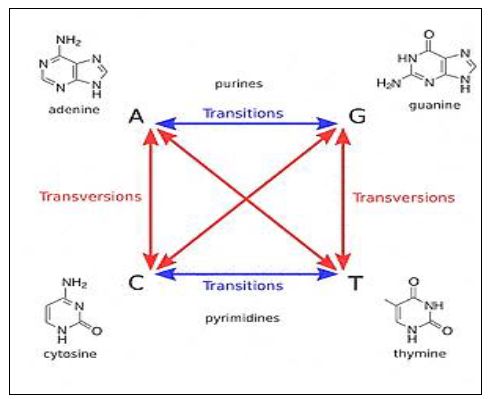 الطفرات الناتجة من تاثير بعض العوامل في الخلايا منها المطفرات مثل العوامل الفيزياوية مثل انواع الاشعة او الحرارة ، او استعمال المواد الكيماوية التي يوجد منها الالاف ، او اقحام القافزات . وعندها يزداد تكرار حدوث الطفرات عن الحد الطبيعي او التلقائي الذي يتراوح بين 10 - 6 الى 10 - 7 ، ومعطياتها تكون على انواع تعتمد على ما يحصل بعد الحث والتي تحدث باليات مختلفة كما موضح في الاتي :