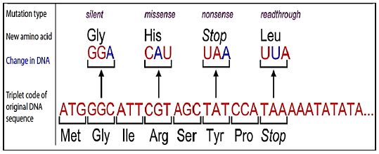 ويمكن ان تؤدي انواع مختلفة من الطفرات وعلى مستويات مختلفة :