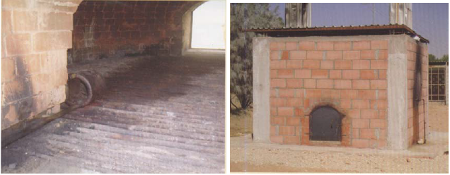 شكل عام للمحرقة ثم صورة مقطعية للمحرقة وتتضح القضبان الفولاذية تفصل بين الطبقتين