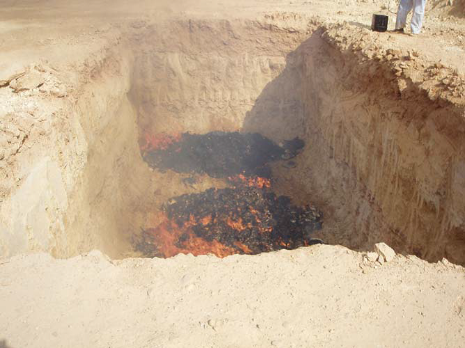 ۱. أن تكون في المزرعة محرقة: والمحرقة جهاز مثل الفرن يصنع من الطوب الحراري أو الحديد، يعمل بوقود الديزل أو فيرنس، ويتم إشعالها ومن ثم توضع الجثث بداخلها حتى تتحول إلى رماد (Ash) وبهذه الطريقة نكون قد تخلصنا من كل الميكروبات التي تكون عالقة بالدجاج النافق والمبعد أو المعزول.