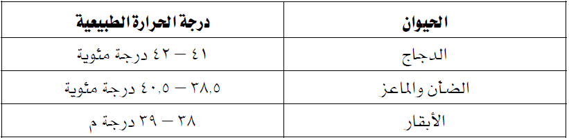 جدول (۳) سرعة التنفس العادية في الدواجن والحيوانات الكبيرة للمقارنة