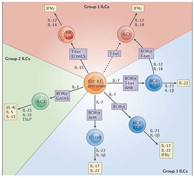 مجموعة من البروتينات السكرية المحورة وهي جزء من Cytokines او المحركات الخلوية تنتج من خلايا الدم البيض التي تنظم الاستجابات المناعية ، والاسم عام لمجموعة من السايتوكينات ذات الوظائف المتعددة تنتج من الخلايا اللمفاوية وغير اللمفاوية وتحفز الجهاز المناعي لتعادي السرطانــــــــــــــــــات . اعطيت تسميات مـــــــــــــن قــــــــــــــــبل (International Union of Immunological Societies ( IUIS/WHO . لها دور مهم في تخصص وتمايز الخلايا المناعية واطوار الاستجابة المناعية ولها تاثيرات مختلفة Anti-Inflammatory , Proinflammatory وهذا ما يعقد عمليات توصيفها ، ويمكن اختصار شبكة تاثيرها بالشكل الاتي :