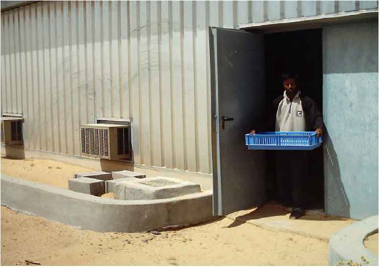 كقاعدة عامة يجب إمداد حجرات مبنى التفريخ برطوبة إضافية، وفيما يلي التوصيات لكل حجرة: