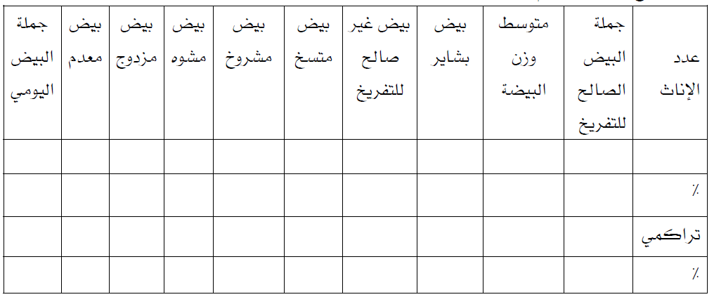 جدول (4) نموذج لسجل إنتاج البيض اليومي