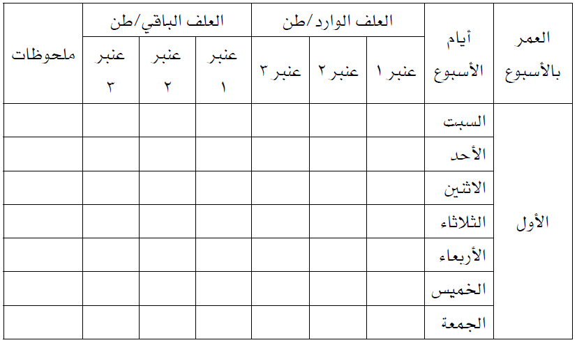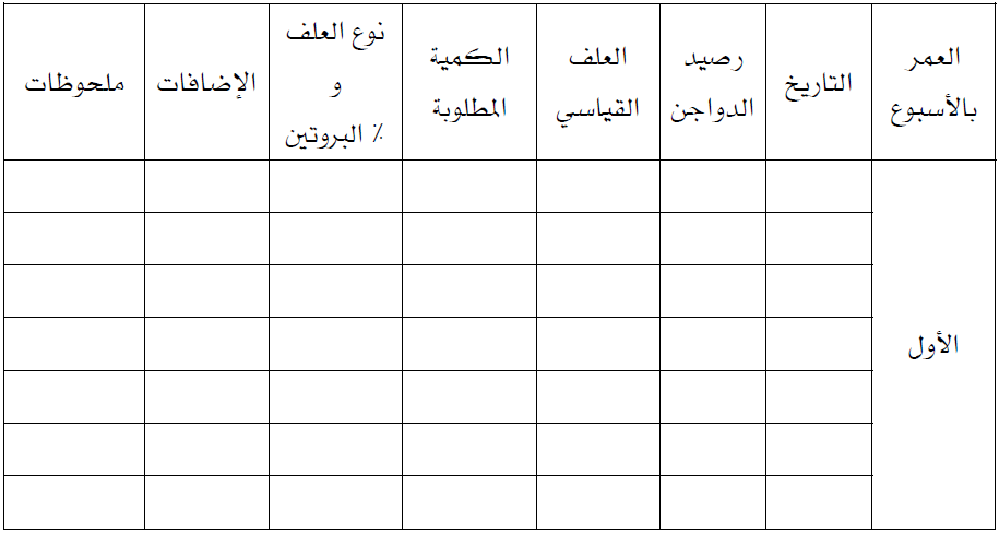 جدول (7) نموذج لسجل يومي للعلف المستهلك