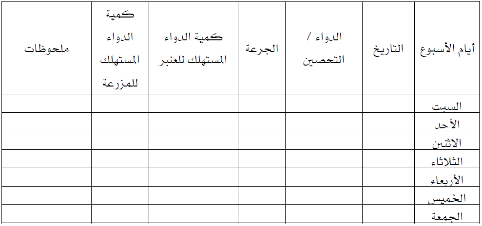 جدول (6) نموذج معاملات الادوية اليومية والتحصينات في الاسبوع