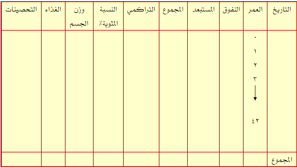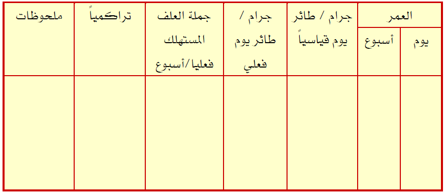 ۲. معرفة معدل استهلاك العلف ومعرفة معامل التحويل الغذائي ومحاولة تحسينه والوصول إلى أحسن معدل تحويل غذائي.