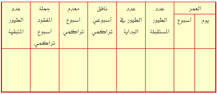 حساب تكاليف وقيمة الطيور المستبعدة أسبوعيا
