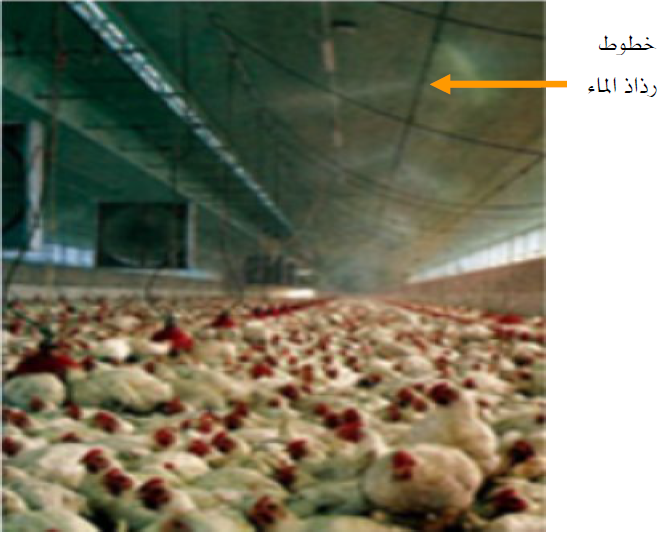 ۲. كلما كانت رطوبة الحظيرة منخفضة كلما زادت كفاءة أجهزة التبريد، حيث إن الهواء المحمل بالرطوبة يصعب عليه حمل رطوبة جديدة منبعثة من الرشاشات.
